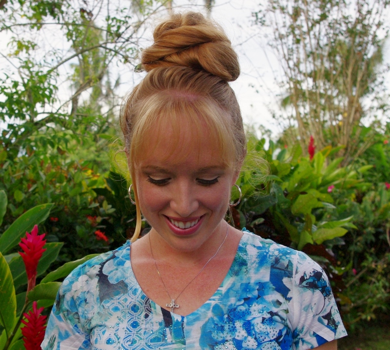My sister recently cut her hair back to waist-length, which looks great on her and makes her hair so thick. Here are some pictures from her look today, a Mohawk Dutch braid with a low ponytail. (My hair was piled in my highest messy bun yet...I'll post a few pictures at the end as they don't deserve to stand alone :-)